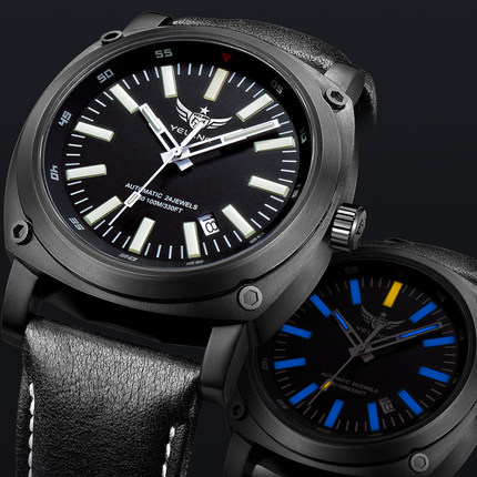 2分钟前野狼手表男H3自发光全自动机械表 - 幻影黑-黑色皮带款-蓝光